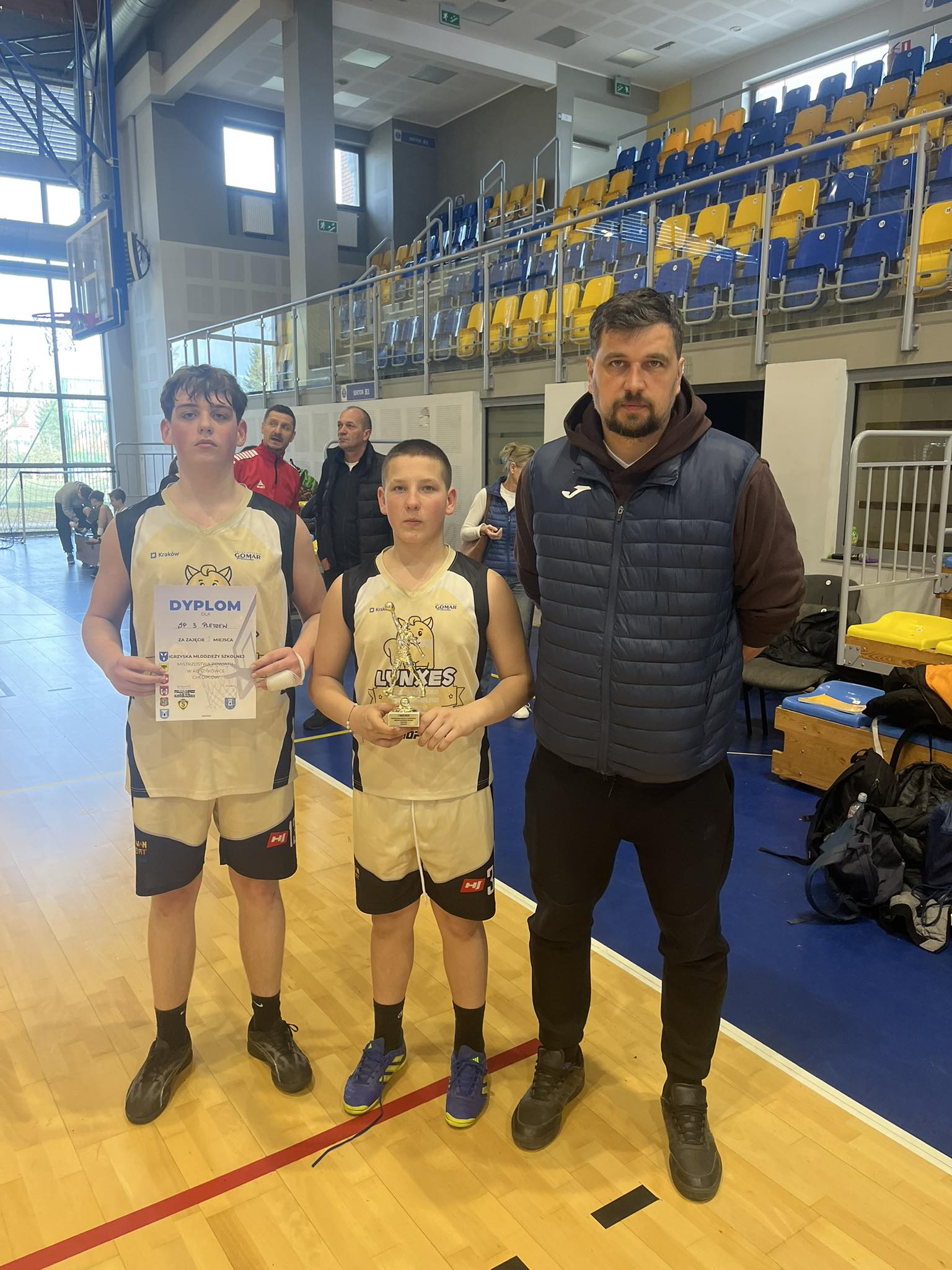 W ostatnich dniach byliśmy świadkami wielu koszykarskich zmagań w wykonaniu naszych uczniów. 13 marca w hali SP 3 rozegraliśmy mistrzostwa naszej gminy w koszykówce chłopców i dziewcząt klas 7-8. W turnieju wzięło udział pięć zespołów. Dziewczęta rywalizowały ze swoimi rówieśniczkami z Kowalewa. Mecz zakończył się zwycięstwem naszych rywalek i to one zostały mistrzyniami gminy. Wśród chłopców przyszło się nam zmierzyć z SP Kowalew oraz SP nr 1 Pleszew. Nasi chłopcy spisali się wyśmienicie i pewnie zwyciężyli obydwa mecze. Tym samym to oni zostali mistrzami gminy. Obydwie nasze drużyny awansowały do finału powiatowego. 16 marca w Kowalewie rozegraliśmy kolejny turniej koszykarski – klasy 4-6. Nasza ekipa rozegrała tym razem dwa mecze. W pierwszym zwyciężyliśmy SP nr 1 Pleszew natomiast w drugim przegraliśmy z SP Kowalew. Tym samym awansowaliśmy z drugiego miejsca do etapu powiatowego. 19 marca w naszej hali odbył się etap powiatowy. W rozegranych w Pleszewie zawodach wzięły udział 4 zespoły z powiatu pleszewskiego. Nasza ekipa chłopców spisała się wyśmienicie wygrywając wszystkie mecze ze swoimi rówieśnikami z Dobrzycy, Kowalewa oraz Gołuchowa. Tym samym zwyciężyła w całym turnieju i awansowała do etapu rejonowego, który odbędzie się w Ostrowie Wlkp. W turnieju wzięły udział również dziewczęta, które doznały porażki z zespołem z Kowalewa, ale zdobyły nowe doświadczenie, które zaprocentuje w przyszłości. Ekipa młodszych 31 marca w naszej hali zmierzyła się w pierwszym meczu z SP Gołuchów i doznała porażki, natomiast w drugim meczu odniosła zwycięstwo nad SP Kowalew i tym samym zajęła drugie miejsce w powiecie.