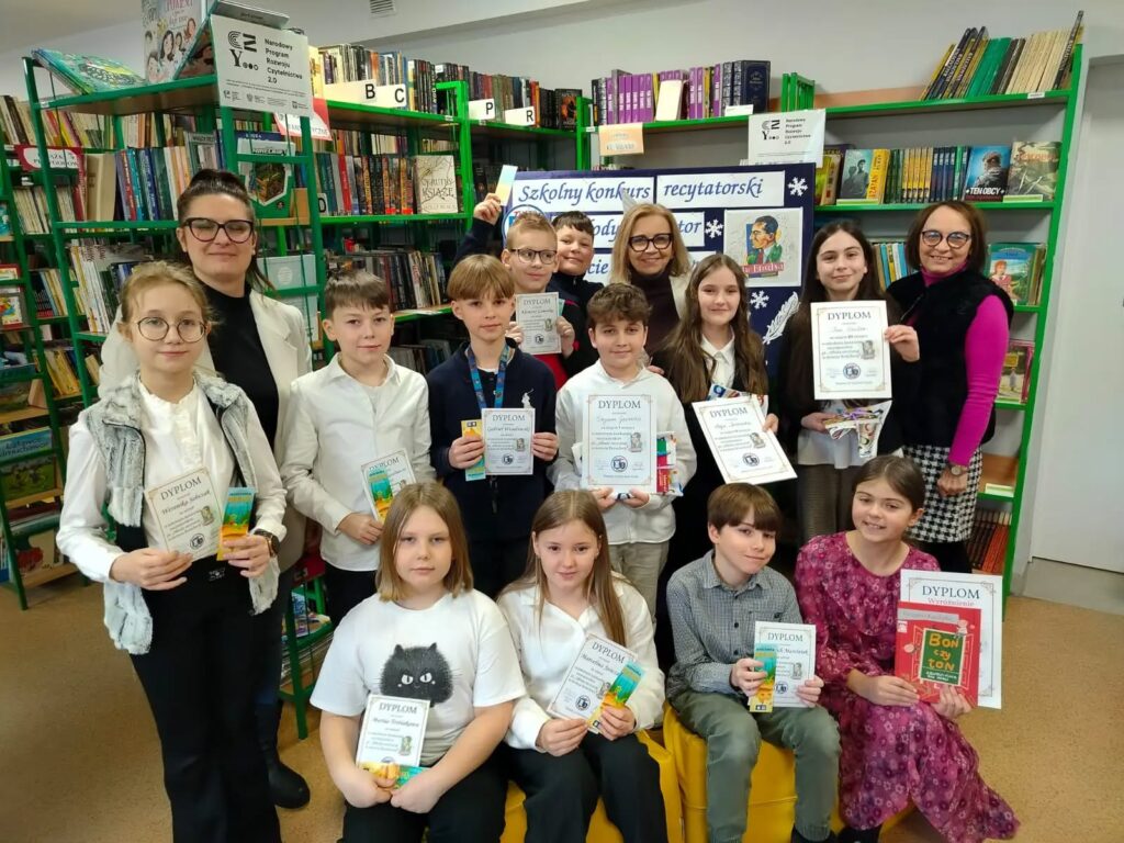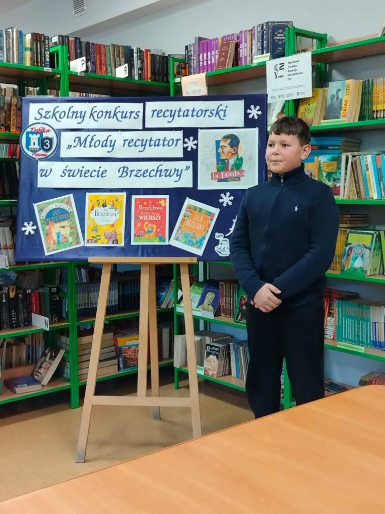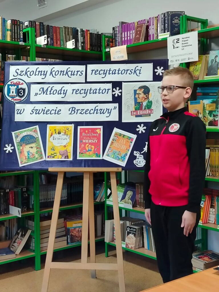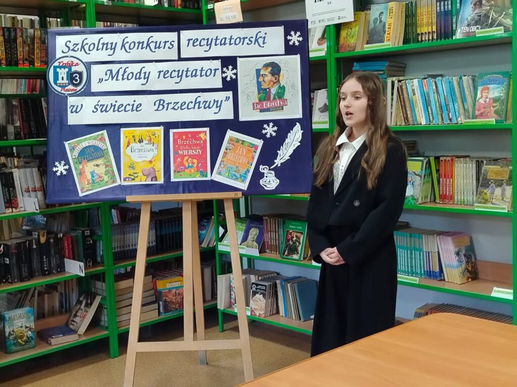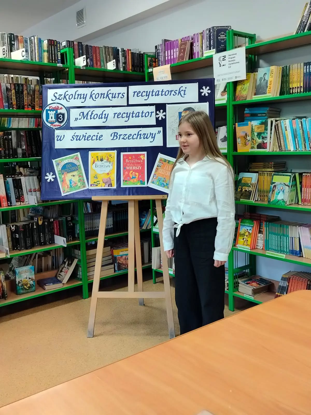 W bibliotece szkolnej odbył się konkurs recytatorski dla uczniów klas czwartych pt. „Młody recytator w świecie Brzechwy”. Uczestnicy zaprezentowali wybrane utwory Jana Brzechwy, wykazując się świetną pamięcią, dykcją oraz interpretacją wierszy. Wśród laureatów znaleźli się Szymon Gwiazda, Maja Iwanicka, Ines Secler oraz Hanna Wajchert. Wydarzenie przebiegło w miłej atmosferze i było doskonałą okazją do rozwijania talentów recytatorskich oraz promocji czytelnictwa wśród uczniów.