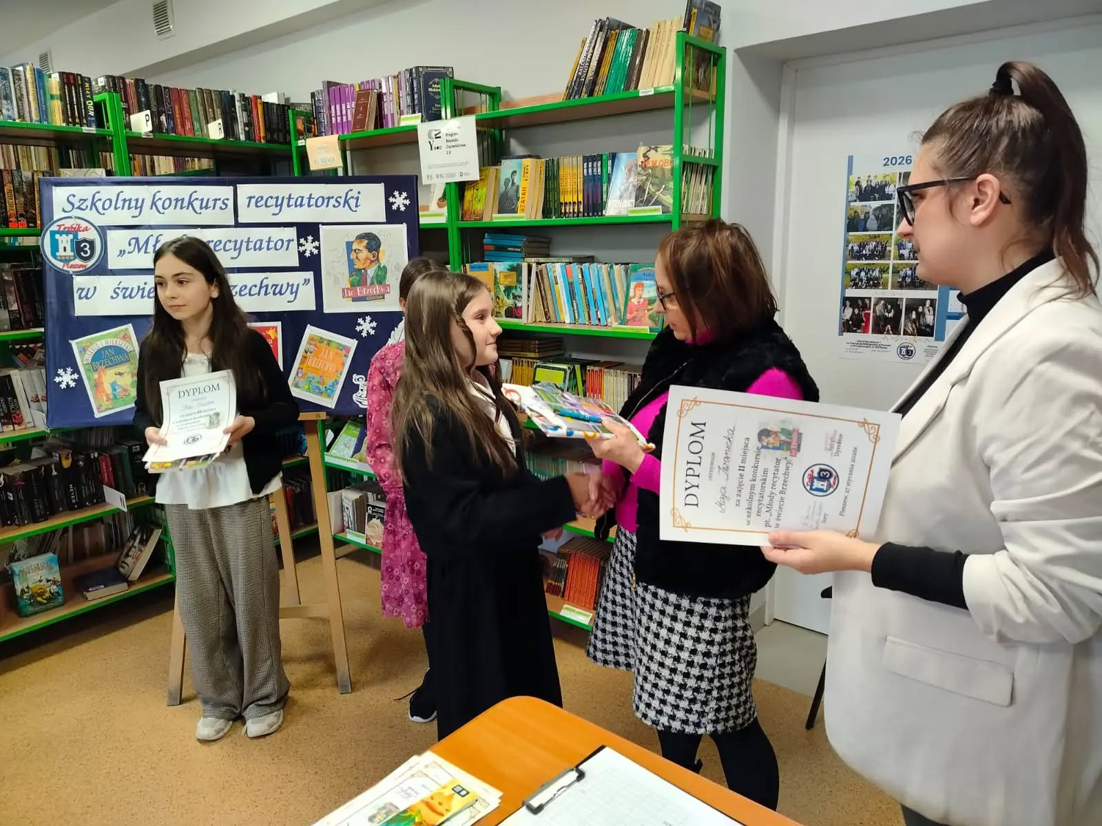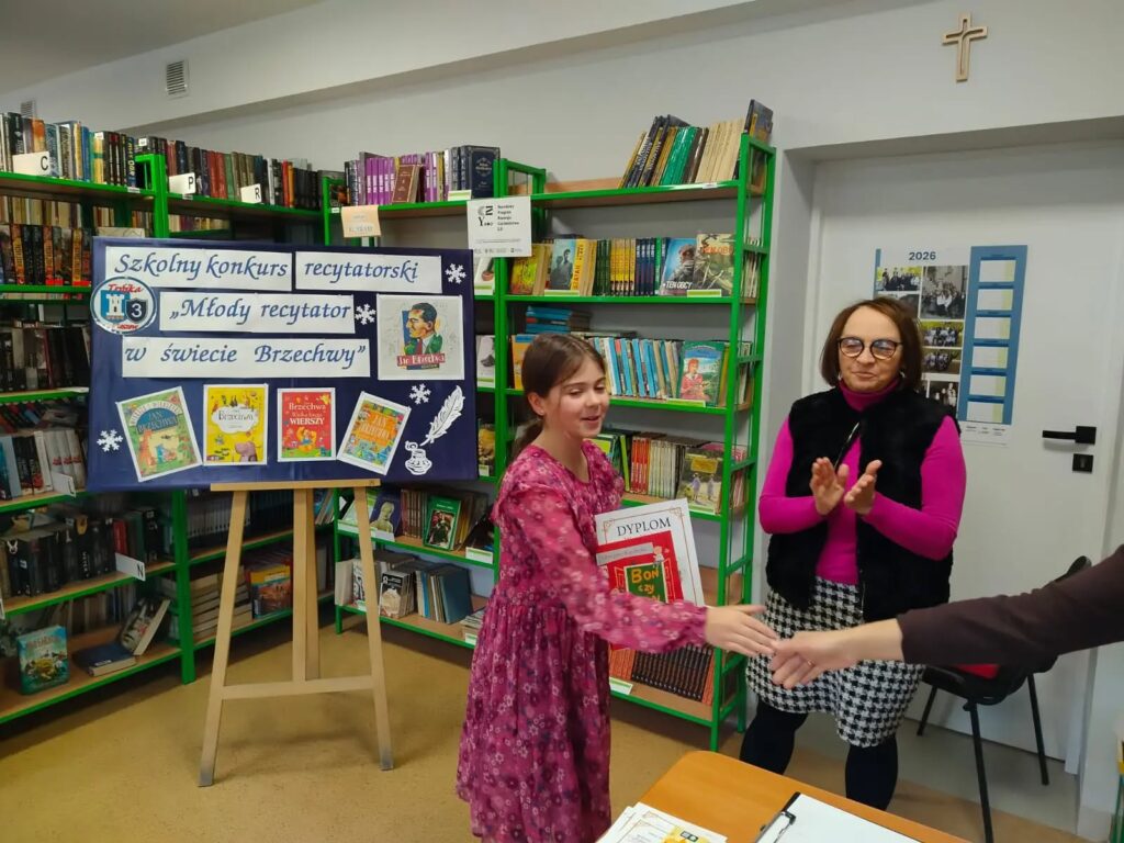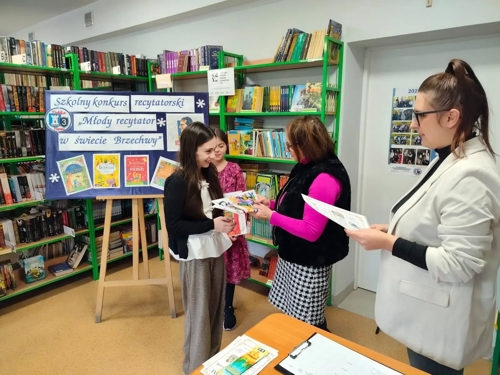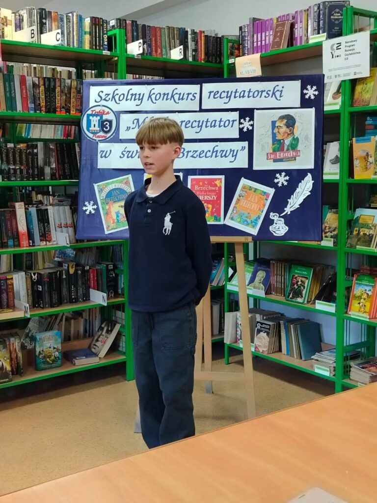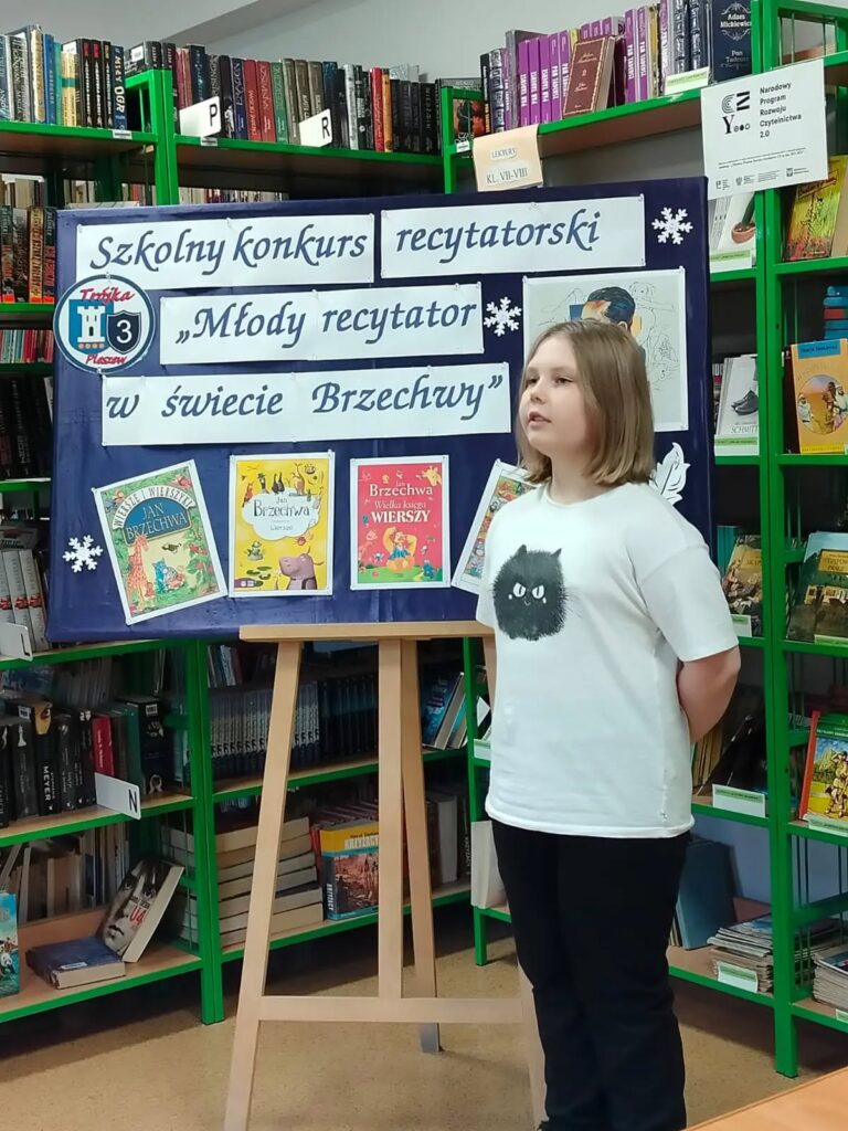 W bibliotece szkolnej odbył się konkurs recytatorski dla uczniów klas czwartych pt. „Młody recytator w świecie Brzechwy”. Uczestnicy zaprezentowali wybrane utwory Jana Brzechwy, wykazując się świetną pamięcią, dykcją oraz interpretacją wierszy. Wśród laureatów znaleźli się Szymon Gwiazda, Maja Iwanicka, Ines Secler oraz Hanna Wajchert. Wydarzenie przebiegło w miłej atmosferze i było doskonałą okazją do rozwijania talentów recytatorskich oraz promocji czytelnictwa wśród uczniów.