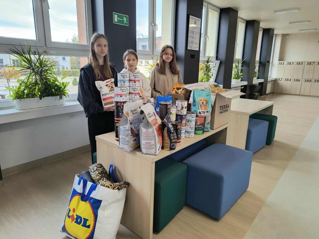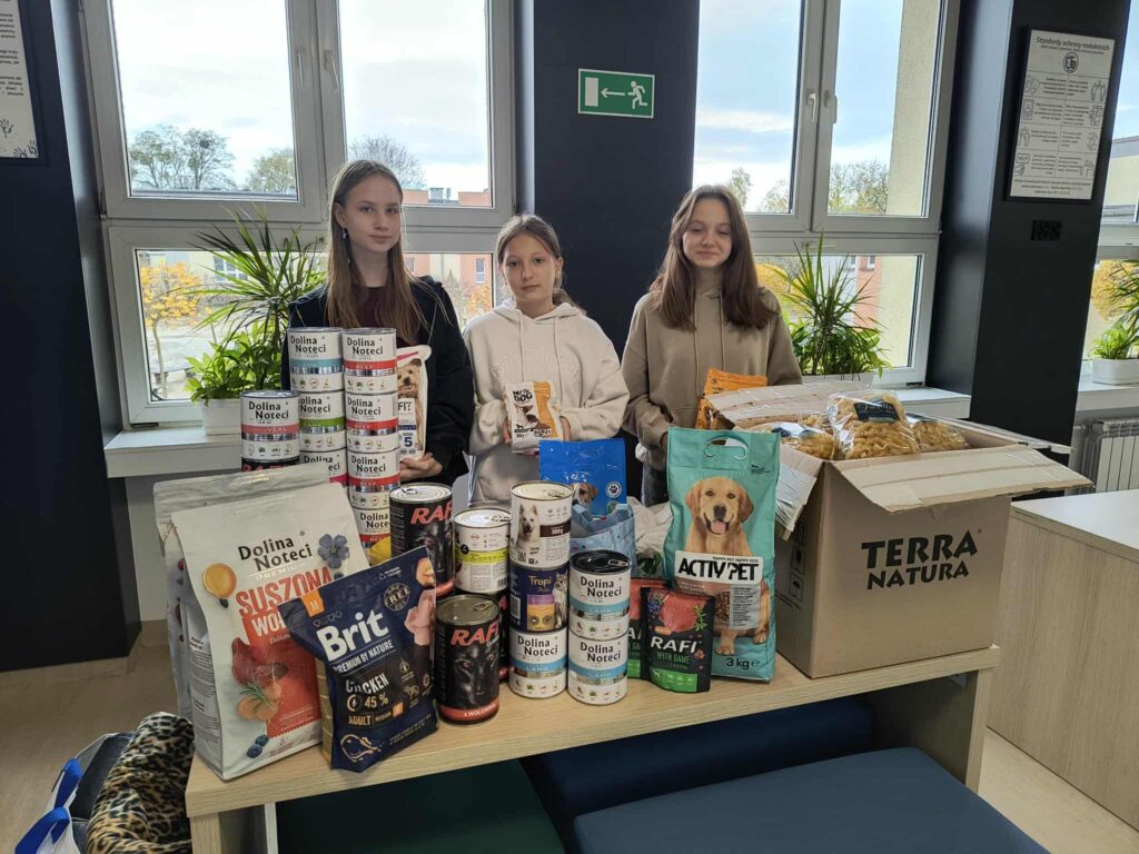 Szkoła Podstawowa nr 3 > Aktualności szkoły > Zbiórka dla Azylu Zbiórka dla Azylu Categorized in: Aktualności szkoły Posted on: 2025-10-30 Last updated on: 2025-11-11 Written by: K. Domagalska W październiku wolontariuszki z klas 5c i 6c przeprowadziły zbiórkę karmy, makaronu i kocy dla zwierząt przebywających w pleszewskim azylu. Serdeczne dziękujemy szkolnej społeczności za wsparcie i okazane. Skip back to main navigation