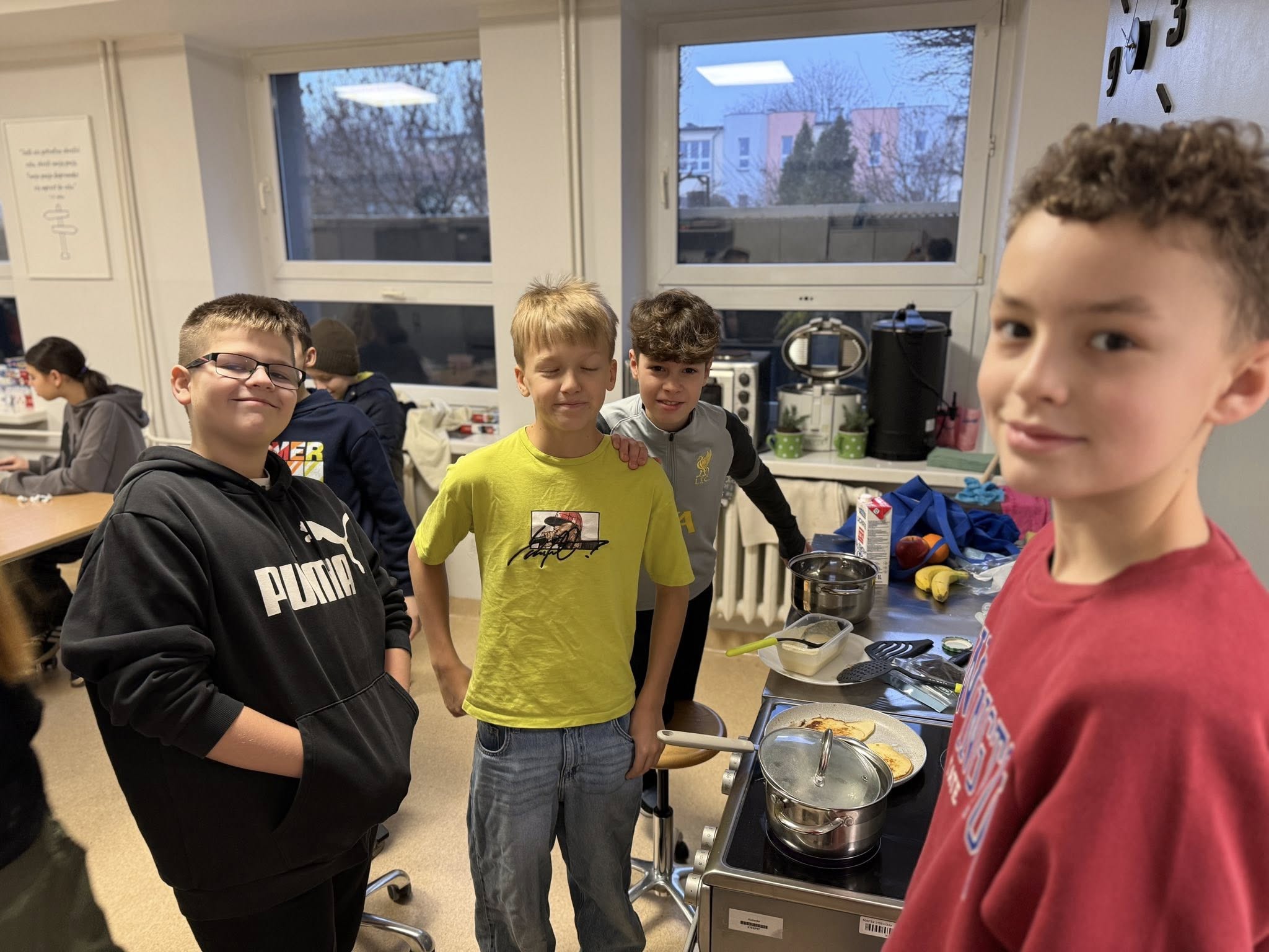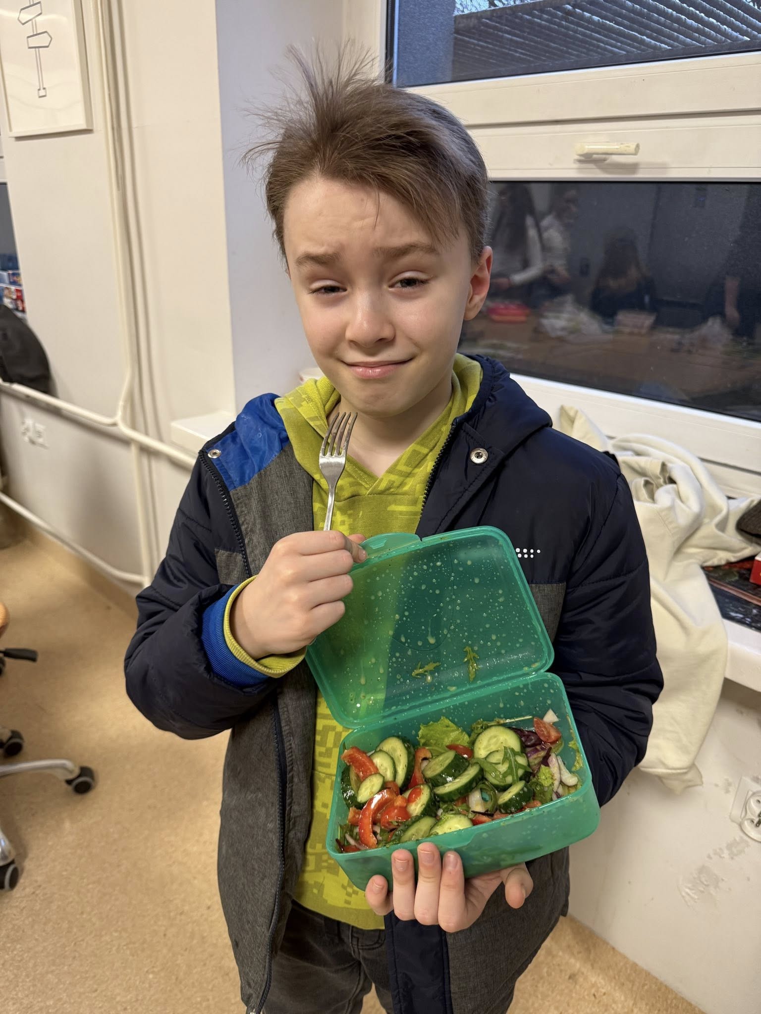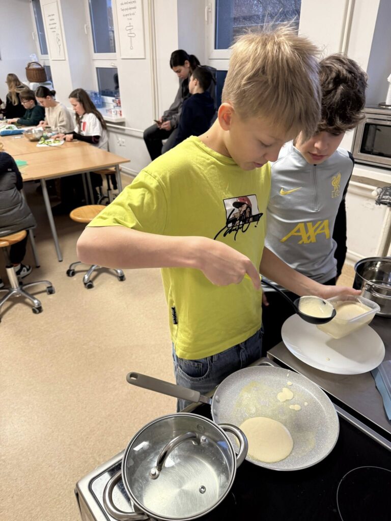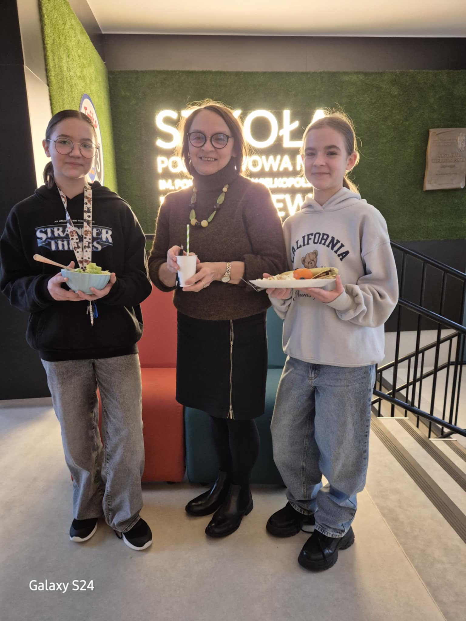 Klasa 5d w ramach zajęć edukacji zdrowotnej zamieniła dziś swoją salę na kolorową, pachnącą kuchnię – powstały zdrowe przekąski, sałatki, naleśniki i koktajle. Uczniowie pracowali w zespołach, rozmawiając o tym, jak komponować wartościowe drugie śniadanie i dlaczego warto sięgać po warzywa oraz owoce. Efektami swojej pracy piątoklasiści podzielili się także z dyrekcją szkoły, która z uśmiechem degustowała ich pyszne smakołyki – zdrowo, twórczo i bardzo apetycznie!